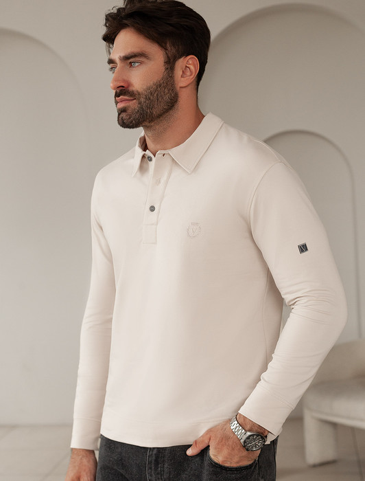 — Лонгслив с воротником поло на пуговицах из премиального хлопка с эластаном