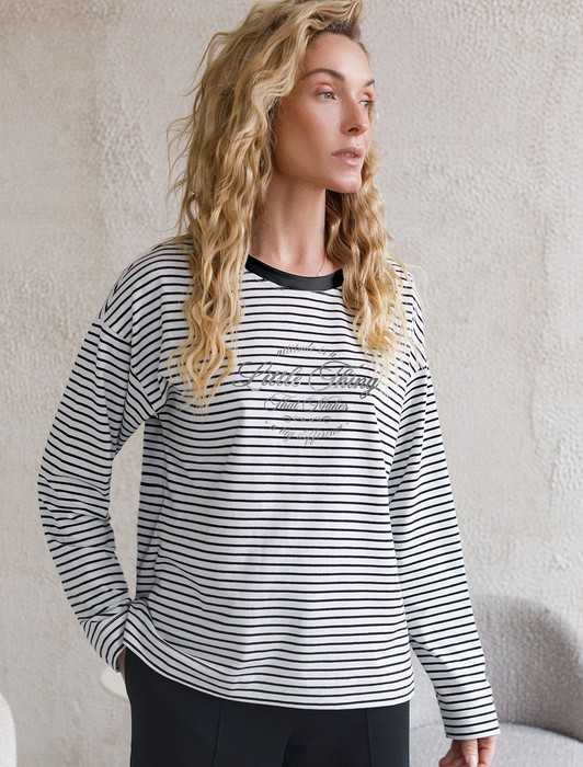 Совместные покупки Магнитогорск Женская одежда Футболки — Лонгслив в полоску с принтом из премиального хлопка с эластаном