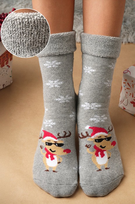 Уютные посиделки дома или весёлые прогулки в праздничный вечер? С этими женскими махровыми носочками любое занятие будет ещё приятнее! Тёплые, мягкие и с новогодним принтом «Олень и снежинки» — они создадут атмосферу праздника и согреют даже в самую холодную зиму.