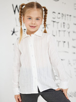 Блузка свободного силуэта. Рукава длинные втачные, с двумя швами. Горловина круглой формы с воротником из поплина. . Сзади изделия застежка - «капелька» на пуговицу d=10mm, петлю жилка вязаная 4 мм,жилка 13797K,KT1-4 . Низ рукавов и изделия обработаны на 2-х игольной плоскошовной машине швом в подгибку.