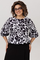 Блузка женская свободного силуэта из ткани. Блузка с цельнокроеной планкой и центральной застежкой на пуговицы. На левой детали переда накладной карман.
