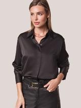 Блузка женская прямого силуэта из сатиновой ткани. Горловина круглой формы, в горловину втачан стояче-отложной воротник. Центральная застежка на пуговицы.