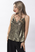 Блузка женская прямого силуэта из сатиновой ткани. Горловина круглой формы, в горловину втачан стояче-отложной воротник. Центральная застежка на пуговицы.