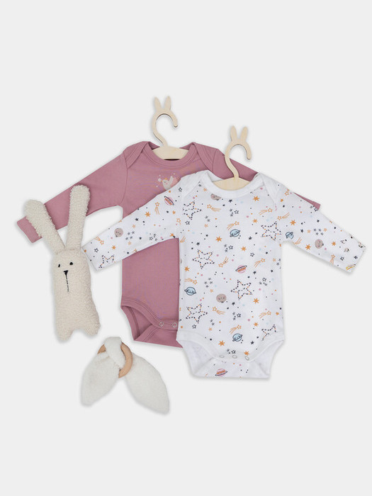 Набор детских боди из натурального хлопка — это комфорт и надежность для самых маленьких. Цельнокроеные спинка и перед делают конструкцию максимально мягкой и удобной, без лишних швов, которые могут мешать или натирать. Круглая горловина аккуратно оформлена бейкой из основного материала, благодаря чему хорошо держит форму и не растягивается со временем. Длинные рукава создают дополнительную защиту и уют, особенно в прохладное время, а застежки на кнопках по центру нижнего края позволяют быстро и легко переодевать малыша, не нарушая его покой. Такой набор — идеальный спутник на каждый день: дома, на прогулке или в поездке.