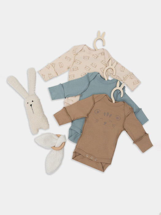 Набор детских боди, выполненных из мягкого и плотного интерлока, — это надежный и удобный выбор для самых маленьких. Круглая горловина с окантовкой из основного материала аккуратно оформлена и обеспечивает легкость при переодевании. Видимые швы на лицевой стороне придают модели необычный, слегка дизайнерский акцент, сохраняя при этом комфорт при носке. Длинные рукава с царапками — важная деталь, которая защищает малыша от случайных движений ручками. Нижняя застежка на кнопках по центру делает процесс переодевания быстрым и удобным как для родителей, так и для самого ребенка. Такие боди станут практичным вариантом на каждый день, обеспечивая тепло, комфорт и свободу движений.