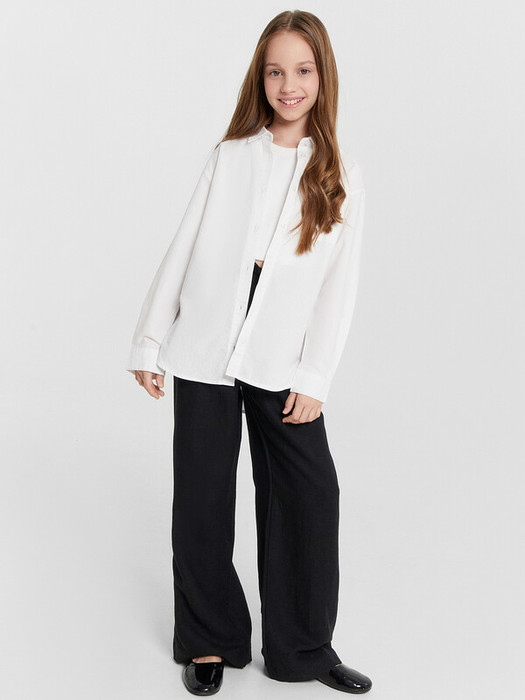 Брюки для девочек прямиго силуэта. Средняя посадка, пояс отрезной с эластичной тесьмой внутри 20RV. В поясе пробиты петли и втянут шнур из основного полотна.  Низ обработан швом в подгибку.