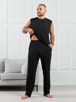 Мужские однотонные брюки для дома, отдыха и спорта. Выполнены из приятного к телу трикотажного полотна. Облегание свободное, длина классическая. Штанины на манжетах. Внутренние карманы на подкладке. Широкий пояс с эластичной тесьмой и регулировочным шнуром. Комфортная модель!