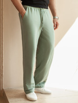 Прямые свободные брюки для мужчин. Выполнены из легкого трикотажного футера. Пояс – с эластичной тесьмой внутри и шнурком-завязкой, который позволяет регулировать ширину в талии. Есть удобные боковые карманы. Гульфик – не функциональный, имитация. Штанины подогнуты. Рекомендуем!