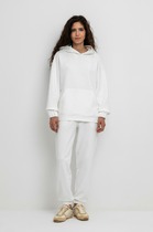 Женские брюки в спортивном стиле. Модель свободного силуэта, выполненная из футера, обеспечит вам комфорт и стиль в любое время года. Эластичный пояс гарантирует удобную посадку, а боковые карманы добавляют практичности. Нижняя часть изделия оснащена кулиской, что позволяет регулировать объем брючин по вашему желанию. Эти брюки станут отличным дополнением к вашему повседневному гардеробу, создавая спортивные расслабленные образы.