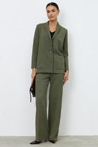Брюки прямые свободные. Посадка средняя. Пояс цельнокроеный с эластичной тесьмой внутри. С внешней стороны пояса пробиты петли и втянут шнур. В боковых швах обработаны карманы. Подкладка карман из основного полотна. Нижние срезы обработаны швом вподгибку.