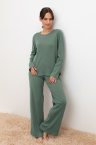 Женские прямые брюки с высокой посадкой – отличный выбор для создания элегантного и комфортного образа. Эластичный пояс обеспечивает удобную посадку и дополнительный комфорт. Боковые карманы добавляют практичности и функциональности. Нижние срезы аккуратно обработаны швом вподгибку, что придает брюкам завершенный и аккуратный вид. Эти брюки выполнены из интерлока – материала, который славится своей прочностью и долговечностью. Интерлок отлично держит форму, приятен к телу и обеспечивает комфорт в течение всего дня.