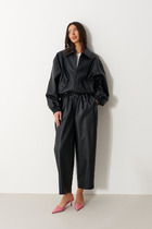 Брюки прямые, свободные. Посадка средняя, сидение опущено. Пояс цельнокроеный с эластичной