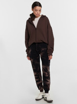 Брюки изготовлены из трикотажного полотна футер. Брюки прямые с высокой посадкой. Пояс отрезной из рибаны с эластичной тесьмой внутри. В передней части пояса с лицевой стороны пробиты петли и втянут шнур. Шов втачивания пояса распошит. Спереди обработаны карманы хулиганы. По низу брюк отрезные манжеты из рибаны.