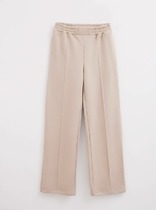 Пояс отрезной с эластичной тесьмой внутри. По переду пояса с внешней стороны пробиты петли и втянут шнур. По переду обработаны карманы-хулиганы, подкладка кармана из основного полотна. Нижние срезы брюк обработаны швом вподгибку с эластичной тесьмой внутри.