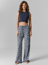 Брюки свободного силуэта. Пояс цельнокроеный, с втаченной эластичной тесьмой, отстрочен. Карманы в боковом шве. Низ брюк обработан в подгибку с эластичной тесьмой.