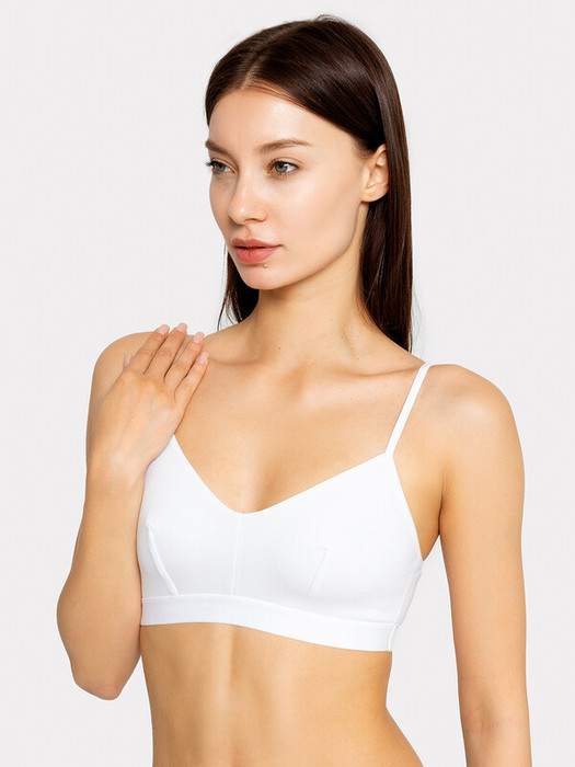 Бюстье базовой расцветки из хлопкового полотна – гипоаллергенного и приятного на ощупь. Мягкие чашки без косточек гарантируют полный комфорт. Бретели в бюстье регулируются. По нижнему срезу проходит жаккардовая тесьма.