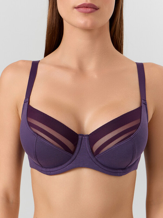Мягкие чашки на косточках с двойным членением аккуратно поддерживают, не создавая давления, а кружево по верхнему краю добавляет элегантности. Широкие бретели и надежная спинка снимают нагрузку с плеч, обеспечивая комфорт в течение всего дня.