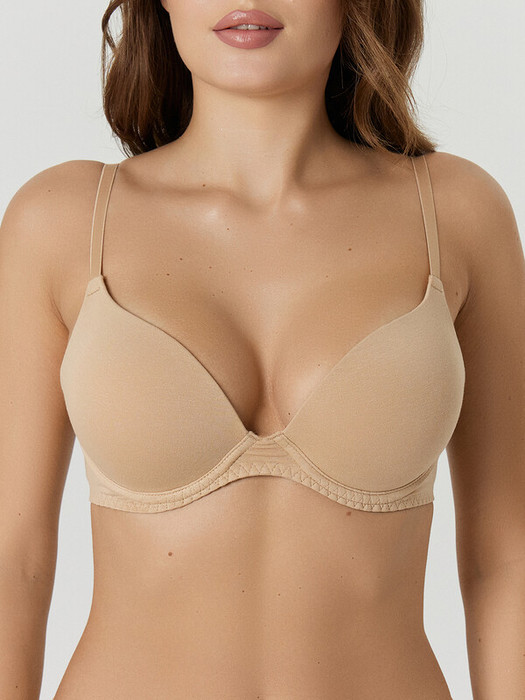 Бюстгальтер push-up с формованными чашками (Ас-65) из кулирного полотна, на каркасах 45 типа. Чашка с подформовкой из основного полотна, обтачная по верхнему срезу и срезу проймы. Ластовица на подкладке из монокапрона.