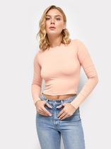 Укороченный женский джемпер прилегающего силуэта из трикотажного полотна. Вырез классический – круглый, не глубокий. Рукава длинные. Отличная база для ваших стильных образов!