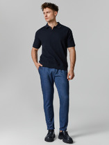 Джогеры прямые, зауженные к низу. Пояс отрезной с эластичной тесьмой внутри. С внутренней стороны пояса пробиты петли и втянут шнур с эглетами (8EКXWCp-1). В боковых швах обработаны карманы - хулиганы, подкладка карман из кулирки. На задней правой половинке накладной карман, по заданию. Нижние срезы брюк обработаны швом вподгибку с эластичной тесьмой внутри.