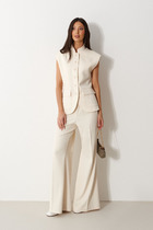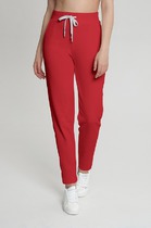 В боковых швах расположены карманы, подкладка из основного полотна. Внутренние швы брючин вывернуты наружу и обработаны на оверлоке контрасной нитью.