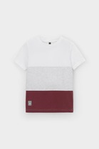 Футболка прямого силуэта для девочек с цельнокроеным рукавом. Нижние срезы рукавов с отворотами. Горловина круглой формы, обтачка из основного полотна. Шов притачивания обтачки закрыт бейкой из основного полотна. Низ изделия обработан на 2-х игольной плоскошовной машине швом в подгибку.