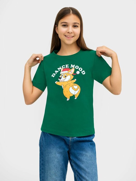 Модная футболка для девочек, выполненная из хлопковой трикотажной кулирки. Силуэт прямой. Перед и спинка без швов и рельефов. Рукава короткие, вырез классический – круглый, не глубокий. Стильная футболка с ярким дизайном!