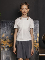 Футболка прямого силуэта. Перед и спинка цельнокроеные. Рукава втачные короткие. Горловина круглой формы, обтачка из основного полотна. Шов притачивания обтачки закрыт бейкой из основного полотна. Низ изделия и рукавов обработаны на 2-х игольной плоскошовной машине швом в подгибку.