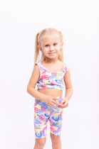 Футболка верхняя прямого силуэта. Перед и спинка цельнокроенные. Рукава втачные короткие. Линия плеча спущена. Горловина круглой формы, обтачка из трикотажного полотна рибаны 1*1. Шов втачивания рибаны по спинке закрыт бейкой из основного полотна. Низ футболки и рукавов обработан на 2-х игольной плоскошовной машине швом в подгибку.