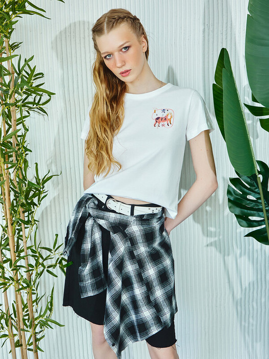 Женская футболка прямого силуэта – отличный выбор для стильного и удобного повседневного гардероба. Укороченная модель с круглой горловиной и короткими рукавами добавляет современный акцент в образ. Нижние срезы футболки и рукавов аккуратно обработаны швом вподгибку, что обеспечивает долговечность и аккуратный вид. Эта футболка идеально сочетается с различными элементами гардероба, позволяя вам создавать разнообразные образы.
