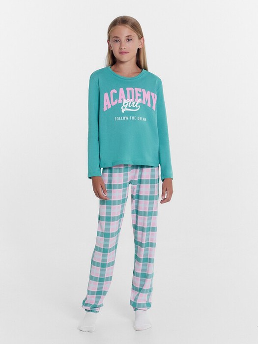 Комплект для девочек состоит из джемпера и брюк.