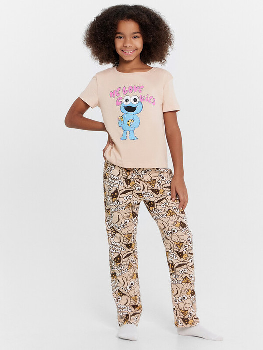 Комплект для девочек состоит из джемпера и брюк.