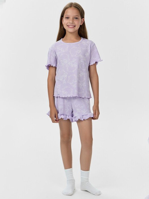 Домашний комплект для девочек — уютный и стильный выбор для комфортного отдыха и сна. Футболка прямого силуэта с круглой горловиной обеспечивает удобную посадку и свободу движений, а ее лаконичный крой делает модель универсальной. Шорты прямого силуэта с эластичной талией мягко прилегают к фигуре, обеспечивая комфорт в течение всего дня. А нежная рюша по нижнему краю добавляет очаровательный акцент, делая комплект более изящным. Выполненный из натурального хлопка, комплект приятен к коже, воздухопроницаем и обеспечивает уютные ощущения. Прекрасный вариант для домашнего гардероба, сочетающий удобство, стиль и нежные детали!