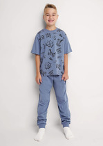 Комплект состоит из рубашки и брюк. Рубашка прямого силуэта, с отложным воротником, спинка цельнокроеная.