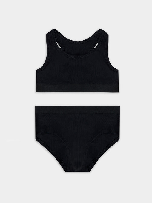 Трусики выполнены из того же дышащего материала, что и топ. Мягкая обработка швов предотвращает натирание, а эластичная тесьма по верхнему краю надежно фиксирует изделие. Комплект нижнего белья для девочки подходит для повседневной носки, занятий спортом или отдыха.