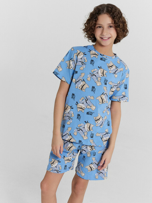 Пижама для мальчиков — идеальное сочетание комфорта и практичности для сна и отдыха! Комплект включает свободную футболку с круглой горловиной и короткими рукавами, обеспечивающую удобную посадку и комфорт в течение ночи. Шорты длиной до колен дополнены эластичной тесьмой в поясе, что позволяет регулировать посадку и гарантирует свободу движений. Изделие выполнено из хлопковой кулирки — мягкого и воздухопроницаемого материала, который приятно прилегает к коже и дарит ощущение легкости. Такая ткань обеспечивает уют и комфорт в любую погоду. Этот комплект станет отличным выбором для спокойного сна и расслабленного домашнего отдыха, позволяя ребёнку чувствовать себя комфортно и свободно. Универсальная и удобная модель для повседневного гардероба!