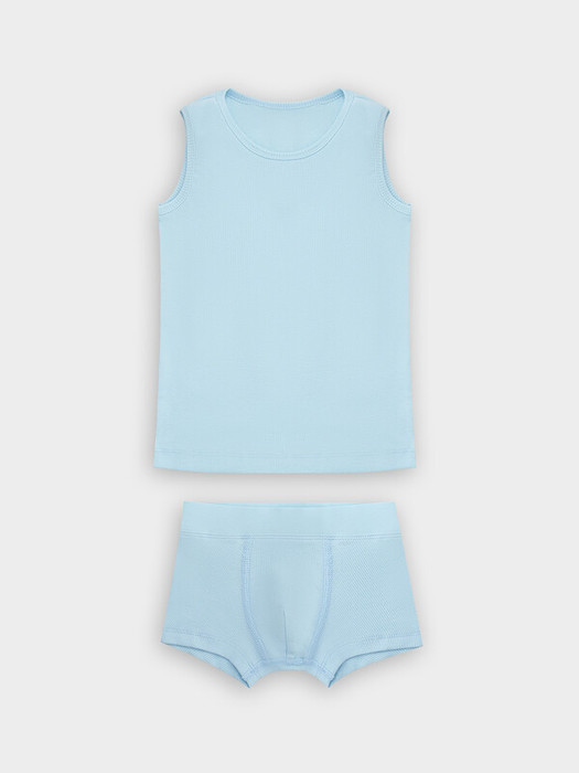 Бельевой комплект для мальчиков — удобный и практичный вариант для повседневного комфорта. Майка прилегающего силуэта без рукавов создана из трикотажной рибаны, которая мягко облегает тело, обеспечивая комфортную посадку. Длина до середины бедра делает модель универсальной, а круглая горловина добавляет классический акцент. Трусы прилегающей формы без боковых швов выполнены из рибаны, что обеспечивает удобное прилегание и свободу движений. Эластичный пояс мягко фиксирует изделие, не создавая давления, а подкладка гульфика из трикотажной кулирки добавляет комфорт и практичность. Нижние срезы трусов аккуратно застрочены в подгибку, что гарантирует долговечность и сохранение формы даже после многократных стирок. Отличный комплект для тех, кто ценит комфорт и качество в базовом белье!