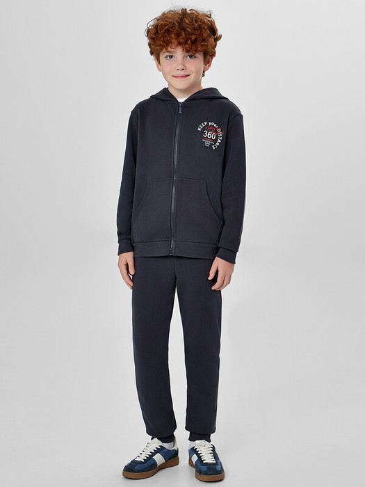 Худи свободного кроя с капюшоном и молнией защищает от ветра, а практичный карман-кенгуру позволяет хранить мелочи. Брюки прямого силуэта с эластичным поясом и регулировочным шнурком обеспечивают идеальную посадку для любых активностей — от игр на улице до занятий спортом.