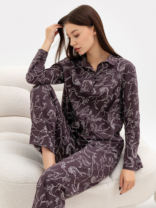 Совместные покупки Магнитогорск Женская одежда Пижамы, халаты — Mark Formelle КОМПЛЕКТ ЖЕНСКИЙ (БЛУЗКА, БРЮКИ) 592462 592462 кони на цвете кора