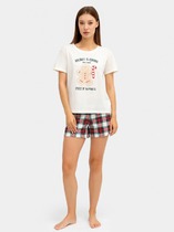 Горловина круглой формы с притачной обтачкой из основного полотна. Рукава длинные втачные. Перед и спинка цельнокроеные. Низ джемпера и рукавов обработан швом в подгибку. Брюки длинные, немного заужены к низу. Пояс цельнокроенный с эластичной тесьмой внутри. Низ брюк застрочен с эластичной тесьмой внутри.