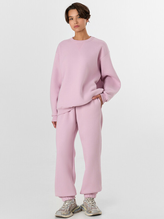 Женский костюм, состоящий из джемпера и джоггеров, создан для повседневного комфорта. Джемпер свободного кроя с мягким внутренним начесом отлично согревает. Круглая горловина, низ изделия и манжеты рукавов отделаны эластичной резинкой-рибаной для удобной посадки. Спереди у горловины настрочен декоративный треугольник из той же резинки. Швы выполнены аккуратно и не ощущаются при носке.
