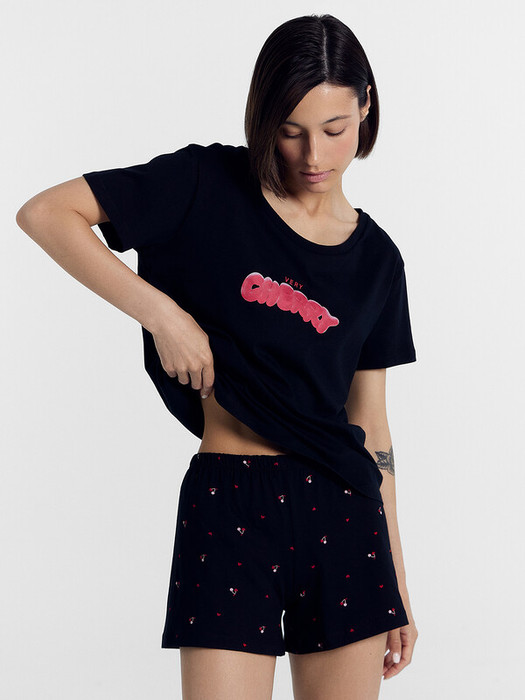 Совместные покупки Магнитогорск Женская одежда Пижамы, халаты — Mark Formelle КОМПЛЕКТ ЖЕНСКИЙ (ДЖЕМПЕР, ШОРТЫ) 592325 592325 черный +вишенки на