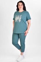 Очаровательный домашний комплект из трикотажной кулирки. Футболка прямого силуэта длиной до талии и просторные бриджи с эластичной тесьмой в поясе гарантируют свободу движений и неповторимый комфорт. Идеально для сна и домашних дел.