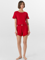 Верхняя часть выполнена из комбинации модала и хлопка — материалов, известных своей шелковистой мягкостью и прочностью. Бриджи выполнены из вискозы, которая обеспечивает идеальную воздухопроницаемость и нежность прикосновения к коже. Такой состав гипоаллергенен, отлично сохраняет цвет и форму после стирок, делая пижаму идеальной для ежедневного использования. Комплект станет любимым вариантом для спокойного сна, уютных вечеров с книгой или неспешных утренних ритуалов.