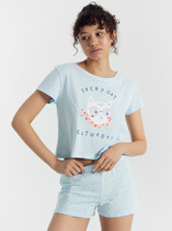 Комплект женский состоит из футболки и шорт. Футболка свободного силуэта. Горловина круглой формы, обтачка из основного полотна. Рукава втачные свободные, линия плеча слегка спущена. Низ рукавов и футболки в подгибку.