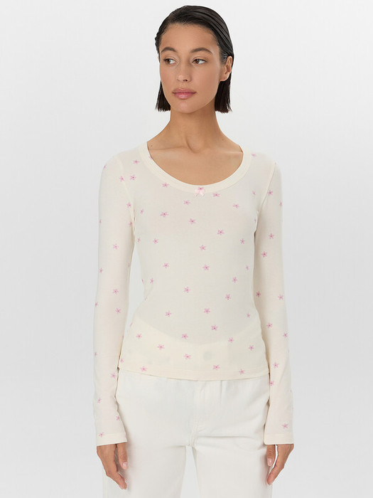 Лонгслив женский — это элегантная модель прилегающего силуэта, которая подчеркивает женственность и чувство стиля. Глубокая овальная горловина, окантованная бейкой, добавляет образу изысканности, а длинные рукава обеспечивают комфорт в прохладную погоду. Нежный фон в сочетании с принтом создает романтичное настроение, делая лонгслив универсальным для повседневной носки, офиса или встреч с друзьями.