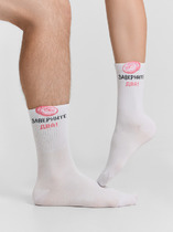 рис.2860 Мультипак из трех пар унисекс носков, высоких с плотным бортом и рисунком в виде надписей на паголенке.