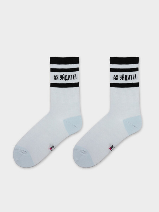 рис.3239 Носок высокий с плотным, цветным бортом, полосками по паголенку и рисунком в виде надписи "Ах уйдите!".