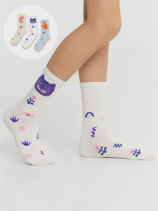 рис.3062 Мультипак из гладких детских носков с рисунком в виде котиков и цветочков. Составляющие: 430A-3063 430A-3064 430A-3065
