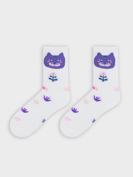 рис.3063  Детские классические носки с рисунком в виде котиков и цветочков.